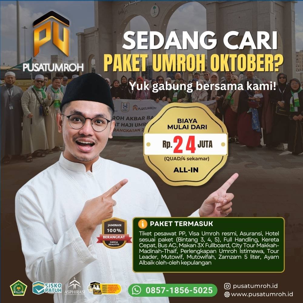 Biaya umroh Oktober 2026 mulai dari 24 jutaan, tergantung dari maskapai, hotel, dan fasilitas yang dipilih. Sahabat bisa memilih paket dan layanan yang sesuai dengan anggaran sahabat.